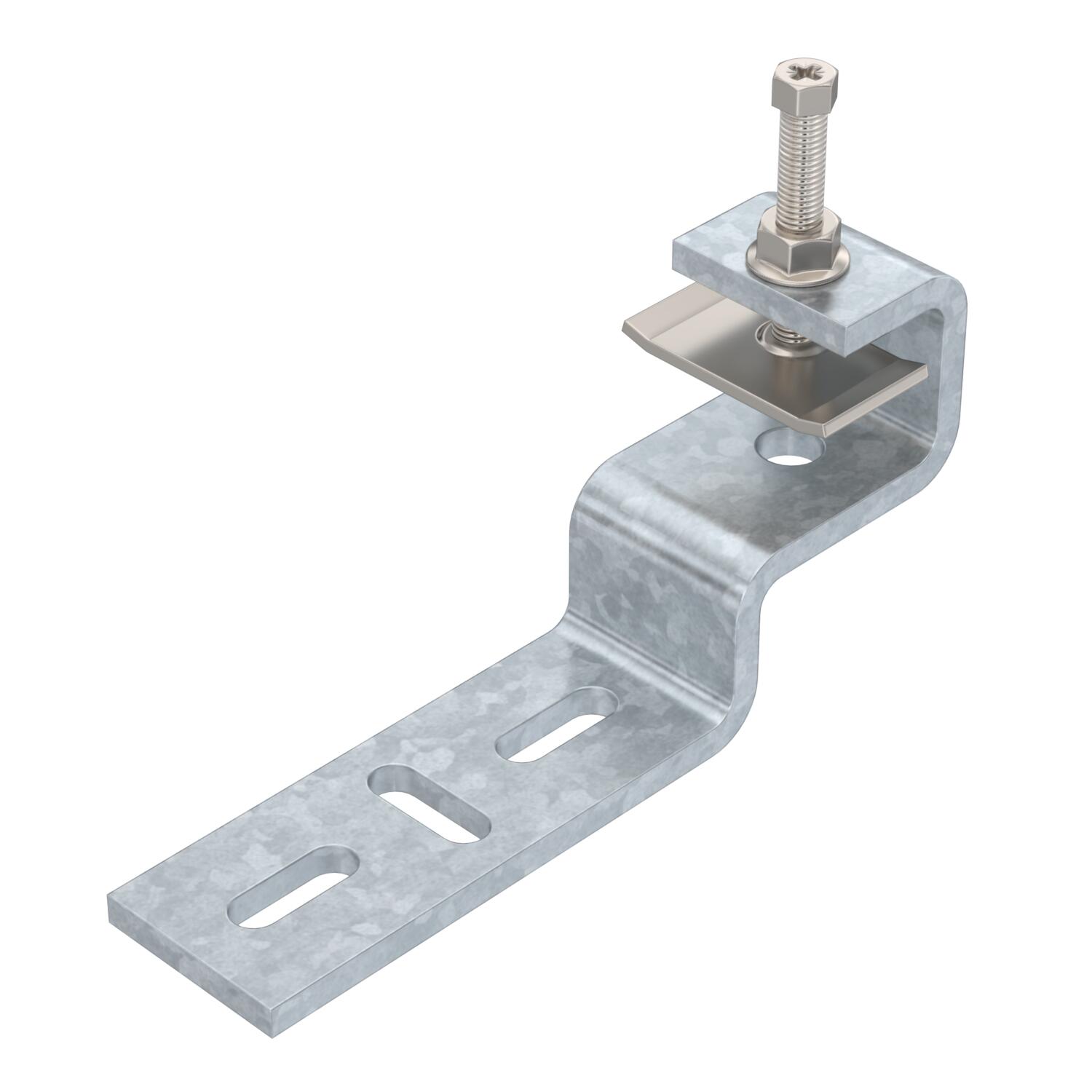 Opis proizvodaBeam clamp for mounting light components on the outer side of vertical or horizontal steel beams. Suitable, for example, for mesh cable trays and cable trays to 200 mm width or clips. The cable tray system attached to the beam clamp can be routed both horizontally and vertically.