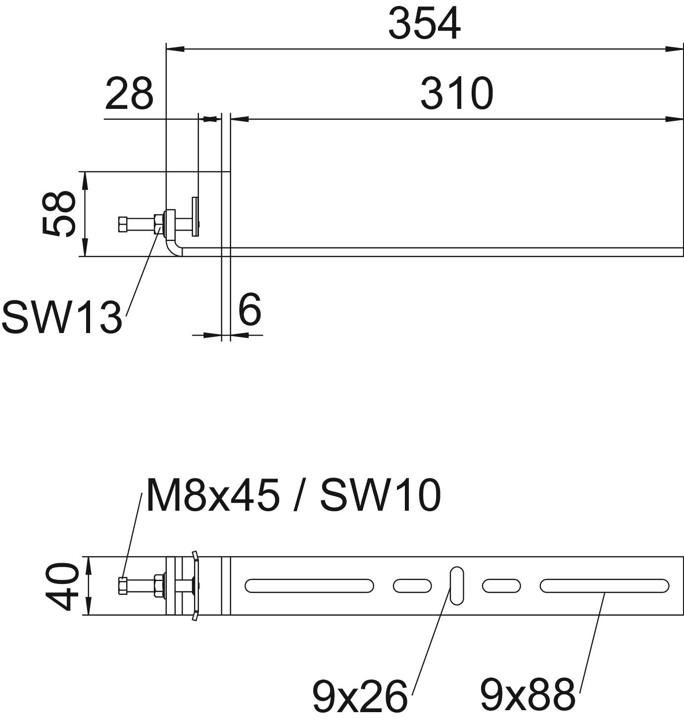Boja cink Debljina materijala 6 mm Dimenzija 354x58x40 Duljina 348 mm Materijal Čelik Nehrđajući plemeniti čelik, obrađen ne Površina vruće pocinčano Širina 310 mm Temperaturno područje korištenja, maks. 120 °C Temperaturno područje korištenja, min. -20 °C Visina 58 mm - Svi tipovi