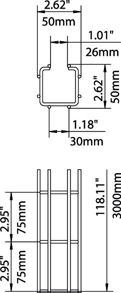 Opis proizvodaMrežna polica u C-obliku od čeličnih žica visine 50 mm.