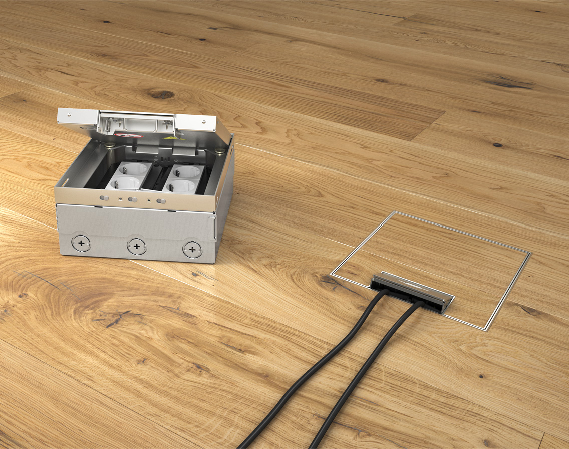 UDHOME4 raspolaže područjem za niveliranje od do 30 mm i zahvaljujući tome može se prilagoditi razini gotovih podova. Podna kutija dokazala se fleksibilnom i kad je riječ o ugradnji elektroelemenata: može se s 4 standardna elektroelementa ili 6 modularnih ugradnih elektroelemenata serije Modul 45®- fleksibilno opremiti strujnom, podatkovnom i multimedijskom tehnologijom.