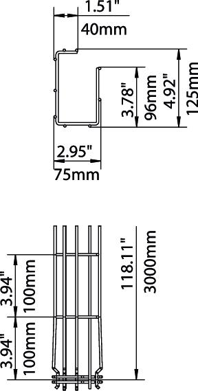 bezvijčana spojnica da Boja oplemenjeni čelik CO2 otisak (GWP) od kolijevke do vrata 5,4826 kg CO2e / 1 Metar Dimenzija 125x75x3000 Duljina 3000 mm Integrirani pregradni zid bez Izvedba spojnice integrirana spojnica Izvedba velikog raspona ne Korisni presjek 6100 mm² Korisni presjek 61 cm² Materijal Nehrđajući čelik 1.4301 Mjera A 96 mm Mjera B 75 mm Mjera C 38 mm Mjera H 125 mm Nehrđajući plemeniti čelik, obrađen da Oblik profila G-oblik Očuvanje funkcije ne Površina površina naknadno obrađena Promjer žice 3,9 mm Razmak podupiranja 1,0m 0,6 kN/m Razmak podupiranja 1,5m 0,35 kN/m Razmak podupiranja 2,0m 0,3 kN/m Razmak podupiranja 2,5m 0,25 kN/m Širina 2,95 in Širina 75 mm Tip ispitivanja opterećenja prema IEC 61537 Tip II Visina 4,92 in Visina 125 mm Vrsta spoja sustava nosača kabela Pričvršćivanje klik-sustavom - Svi tipovi