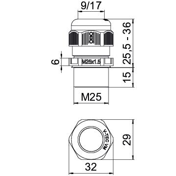 bez halogena da Boja crno CO2 otisak (GWP) od kolijevke do vrata 0,0727 kg CO2e / 1 Komad Dimenzija L maks. 36 mm Dimenzija L min. 25,5 mm Dimenzija M25 Djeljiva kabelska uvodnica ne Duljina navoja 15 mm Izvedba ravno Kabelska uvodnica za plosnati kabel ne Materijal Poliamid Mjera e 32 mm Mjera L1 15 mm Mjera L2 6 mm Mogućnost rasterećenja da Navoj M25 x 1,5 Navojni uspon 1,5 mm Nazivna veličina navoja 25 Nepropusno područje D, maks. 17 mm Nepropusno područje D, min. 9 mm Nestabilan zakretni moment 5 Nm ojačano staklenim vlaknima ne otporno na udarce ne S protumaticom ne Šesterokut 32 mm Širina ključa 29 Stupanj zaštite IP68 Temperaturno područje korištenja, maks. 65 °C Temperaturno područje korištenja, min. -20 °C vatrootporan prema VDE 0471/DIN 695 dio 2-1, temperatura ispitivanja 650°C Višestruka brtva ne Vrsta brtve Brtveni prsten Vrsta navoja metrički Za Ex-područje bez za EX-područje plin bez za EX-područje prašina bez zaštićeno od eksplozije ne Zaštita od savijanja ne  - Svi tipovi