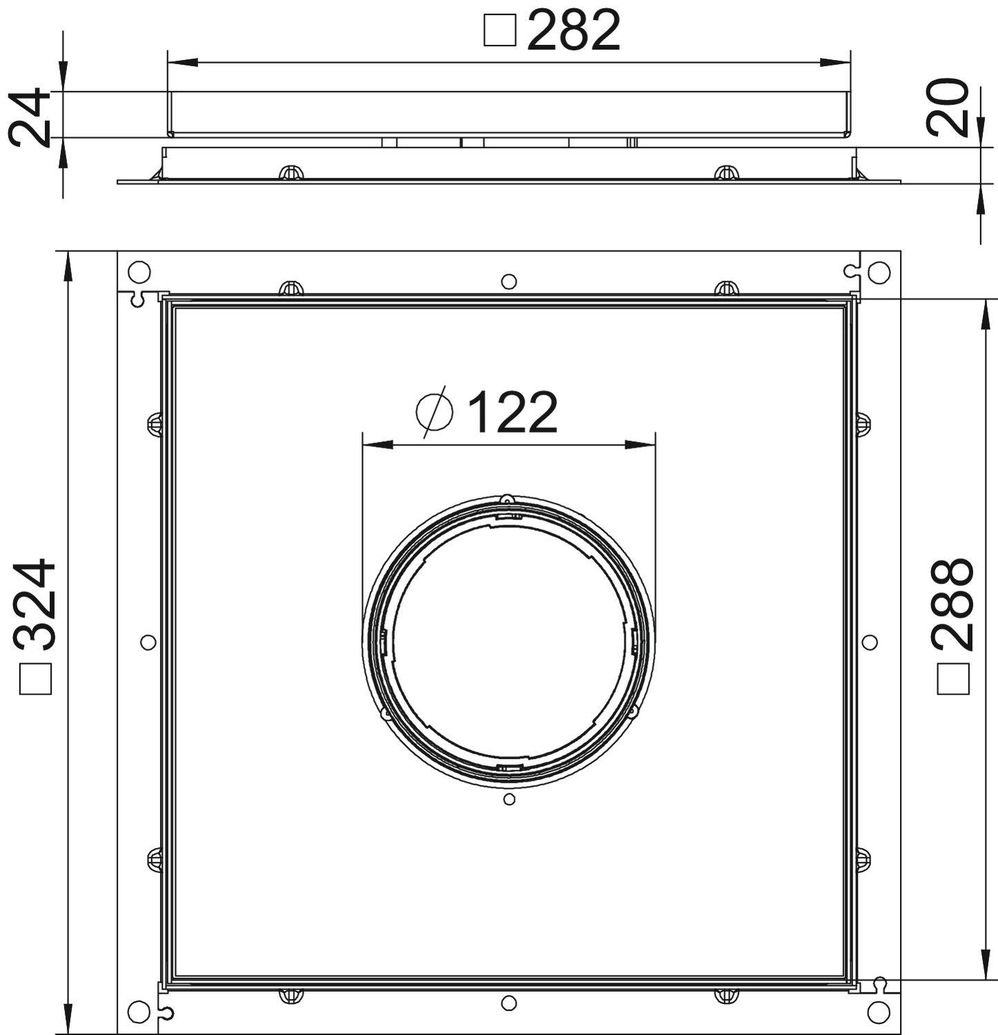 Broj izvoda vodiča 1 CO2 otisak (GWP) od kolijevke do vrata 19,3264 kg CO2e / 1 Komad Debljina podne obloge 18 mm Dimenzija 283x283x20 Izvedba izlaza za kabele Potopni tubus Materijal Nehrđajući čelik 1.4301 Mjera A 324 mm Mjera B 288 mm Mjera C 282 mm Mjera h 20 mm Nosač za prihvat ugradnih kutija ne Održavanje poda mokro - Svi tipovi