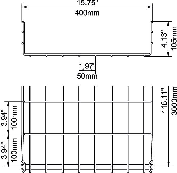 Za mrežnu policu nisu potrebne dodatne komponente za spajanje, polica se jednostavno utakne jedna u drugu. Širina petlje iznosi 50 x 100 mm.