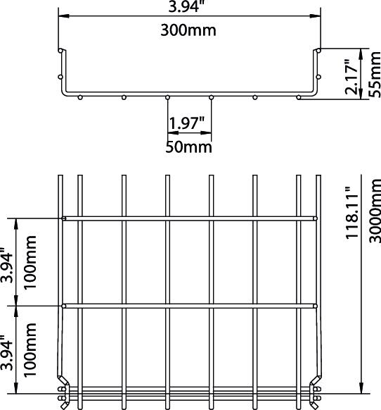 Za mrežnu policu nisu potrebne dodatne komponente za spajanje, polica se jednostavno utaknejedna u drugu. Širina petlje iznosi 50 x 100 mm (iznimka GRM 55/50 = 20 x 100 mm).