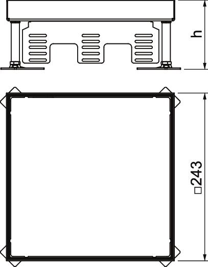 Opis proizvodaNivelirajuća kvadratna kazeta, slijepa, nazivne veličine 9, za revizijski otvor u sustavima podnih kanala, dvostrukim ili šupljim podovima, sa suhim ili mokrim održavanjem u zatvorenom prostoru. Prikladno samo za glatke podne obloge.