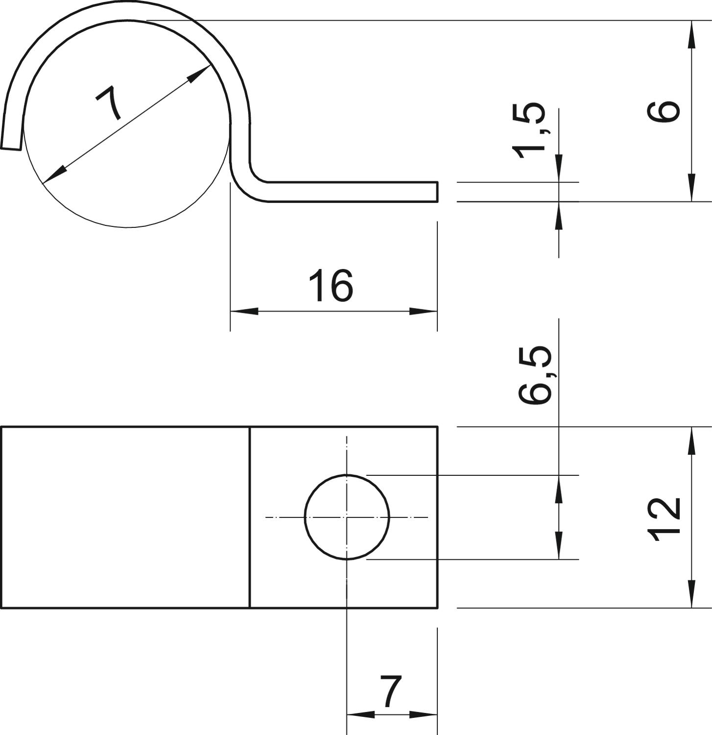 bez halogena da Broj kablova/cijevi 1 CO2 otisak (GWP) od kolijevke do vrata 0,0091 kg CO2e / 1 Komad Debljina materijala 1,5 mm Dimenzija 7mm Duljina 16 mm Izvedba jednostruko presavijen Materijal Čelik Mjera A 7 mm Mjera b 12 mm Mjera D 7 mm Mjera H 6 mm Mjera L 16 mm Nazivni promjer 7 mm Očuvanje funkcije da Omotan plastikom ne Otporne na UV zračenje da Površina galvanski pocinčano Prikladno u protupožarnom području da Razmak od zida ne Širina 12 mm Veličina provrta 6,5 Visina 6 mm Vrsta pričvršćivanja Rupa s navojem za promjer 7 - Svi tipovi