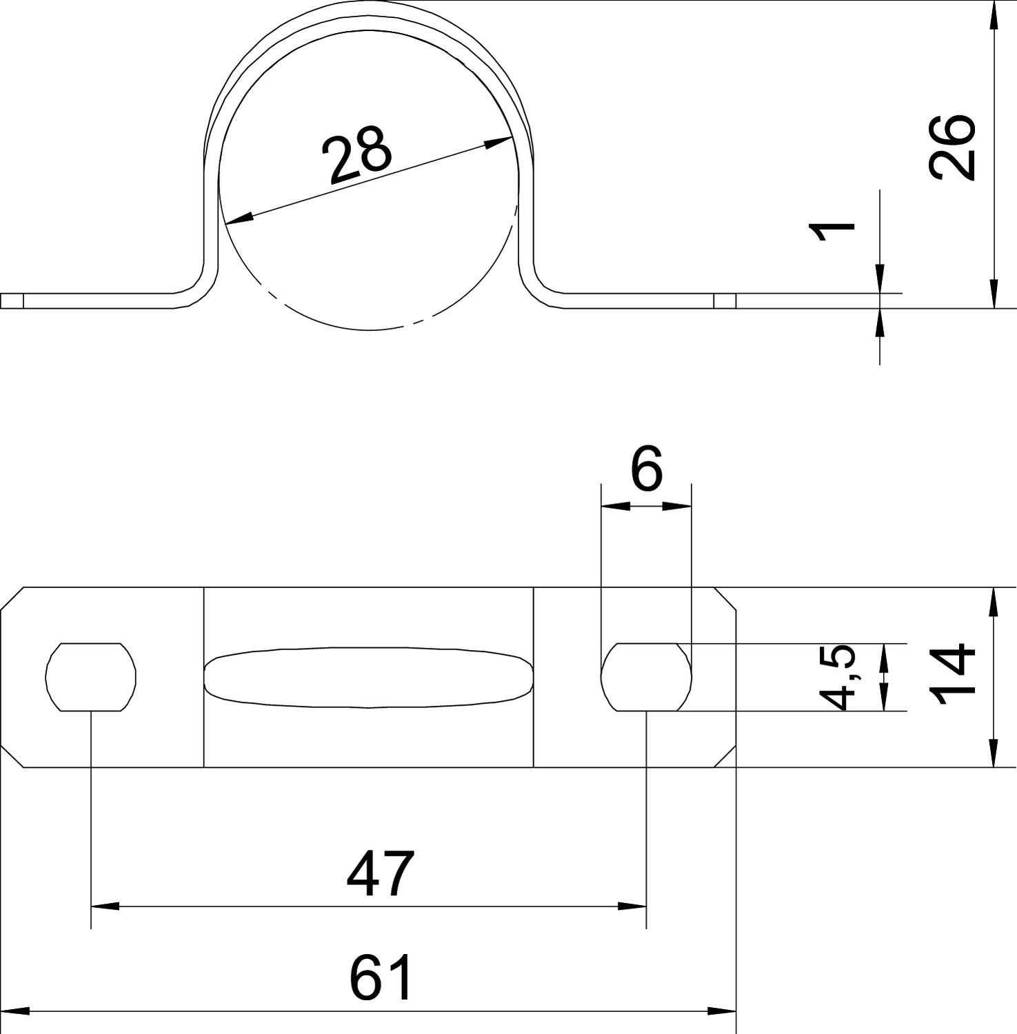 bez halogena da Broj kablova/cijevi 1 CO2 otisak (GWP) od kolijevke do vrata 0,0249 kg CO2e / 1 Komad Debljina materijala 1 mm Dimenzija 28mm Duljina 61 mm Izvedba dvostruko presavijen Materijal Čelik Mjera A 61 mm Mjera b 14 mm Mjera B 47 mm Mjera D 28 mm Mjera d 4,5 mm Mjera e 6 mm Mjera H 26 mm Mjera t 1 mm Nazivni promjer 28 mm Omotan plastikom ne Otporne na UV zračenje da Površina galvanski pocinčano Prikladno u protupožarnom području ne Razmak od zida ne Širina 14 mm Veličina provrta 4,5 x 6 Visina 26 mm Vrsta pričvršćivanja Rupa s navojem za promjer 28 - Svi tipovi