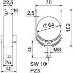 bez halogena da Broj kablova/cijevi 1 CO2 otisak (GWP) od kolijevke do vrata 0,3103 kg CO2e / 1 Komad Debljina lima 2,5 mm Dimenzija 58-64mm Dodatak materijala Čelik Dodatak površine F vruće pocinčano Duljina 25 mm Dužina vanjske mjere 40 mm Kvaliteta materijala kade Polipropilen Maks. Zakretni moment 5 Nm Materijal Čelik Materijal kade Plastika Mjera A 25 mm Mjera B 70 mm Mjera C 40 mm Mjera G (mm) M8 Mjera H 102 mm Mjera L 45 mm Mjera t 2,5 mm Način montaže Montažni profil Navoj M8 Područje zatezanja D maks. 64 mm Područje zatezanja D min. 58 mm Površina vruće pocinčano S plastičnom posudom da Sa nasuprotnom pločicom ne Širina 70 mm Širina utora 10 mm Visina 102 mm za maks. promjere cijevi 64 mm za min. promjere cijevi 58 mm za montažni profil sa širinom proreza (s intervalom) maks. 17 mm za montažni profil sa širinom proreza (s intervalom) min. 16 mm - Svi tipovi
