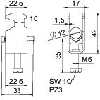 Opis proizvodaObujmica s čekićastom kopčom, s plastičnom pričvrsnom pločicom od polipropilena. Za vertikalnu i horizontalnu montažu 1 pojedinačnog kabela na C-profilnu šinu. Za širinu proreza 16 – 17 mm. S jednostrukim vijkom na pričvrsnoj pločici, univerzalnim vijkom sa šesterokutnom glavom SW10, ravnim ili križnim utorom. Prikladna za montažu u unutarnjem i vanjskom području. Preporuča se upotreba nasuprotne pločice.