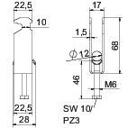 Opis proizvodaObujmica s čekićastom kopčom, metalna pričvrsna pločica sa zaobljenim rubovima za zaštitu kabela. Za vertikalnu i horizontalnu montažu 3 pojedinačna kabela na C montažne profile. Za širinu proreza 16 – 17 mm. S jednostrukim vijkom na pričvrsnoj pločici, univerzalnim vijkom sa šesterokutnom glavom SW10, ravnim ili križnim utorom. Prikladna za montažu u unutarnjem i vanjskom području. Više kabela trebalo bi razdvojiti s pomoću dvostrukih pločica. Preporuča se upotreba nasuprotne pločice.