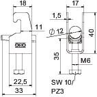 Opis proizvodaObujmica s U-kopčom, s plastičnom pričvrsnom pločicom od polipropilena Za vertikalnu i horizontalnu montažu 1 pojedinačnog kabela na C-profilnu šinu. Za širinu proreza 18 - 22 mm. S jednostrukim vijkom na pričvrsnoj pločici, univerzalnim vijkom sa šesterokutnom glavom SW10, ravnim ili križnim utorom. Prikladna za montažu u unutarnjem i vanjskom području. Preporuča se upotreba nasuprotne pločice.