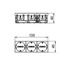 Opis proizvodaPriključnica sa zaštitnim kontaktom 3-struka 0°, s povećanom kontaktnom zaštitom, s utičnim stezaljkama, 2-polno, 16 A, 250 V~, sa stezaljkama prema IEC 60884-1.