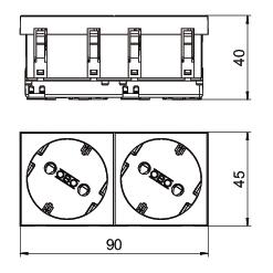 Opis proizvoda2-struka priključnica sa zaštitnim kontaktom, 33°, s povećanom zaštitom od dodira, s utičnim stezaljkama, 2-polna, 16 A, 250 V~, sa stezaljkama sukladno IEC 60884-1.
