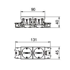 Opis proizvodaPriključnica sa zaštitnim kontaktom s bočnim priključkom 2-struka 0°, s povišenom zaštitom od dodira, s utičnim stezaljkama, 2-polna, 16 A, 250 V~, sa stezaljkama sukladno IEC 60884-1, prikladno za ugradnju u parapetne kanale Rapid 45.
