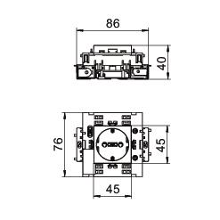 Opis proizvodaPriključnica sa zaštitnim kontaktom s bočnim priključkom 1-struka 0°, s povišenom zaštitom od dodira, s utičnim stezaljkama, 2-polna, 16 A, 250 V~, sa stezaljkama sukladno IEC 60884-1, prikladno za ugradnju u parapetne kanale Rapid 80.