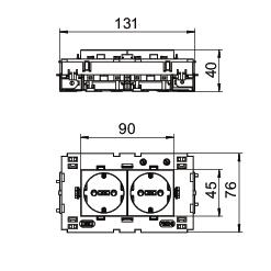 Opis proizvodaPriključnica sa zaštitnim kontaktom s bočnim priključkom 2-struka 0°, s povišenom zaštitom od dodira, s utičnim stezaljkama, 2-polna, 16 A, 250 V~, sa stezaljkama sukladno IEC 60884-1, prikladno za ugradnju u parapetne kanale Rapid 80.