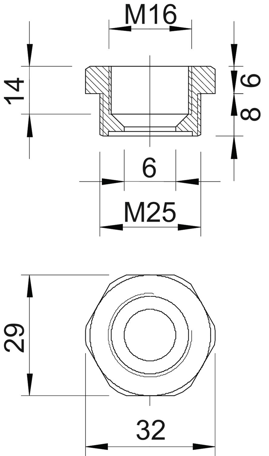 Opis proizvodaRedukcija metričkim unutarnjim i vanjskim navojem za montažu plastičnih kabelskih vijčanih spojeva na kućištima. Stupanj zaštite IP54 bez dodatne priključne brtve. Stupanj zaštite do IP68 moguć je s dodatnom priključnom brtvom, npr. O-prstenom ili plosnatim prstenom.