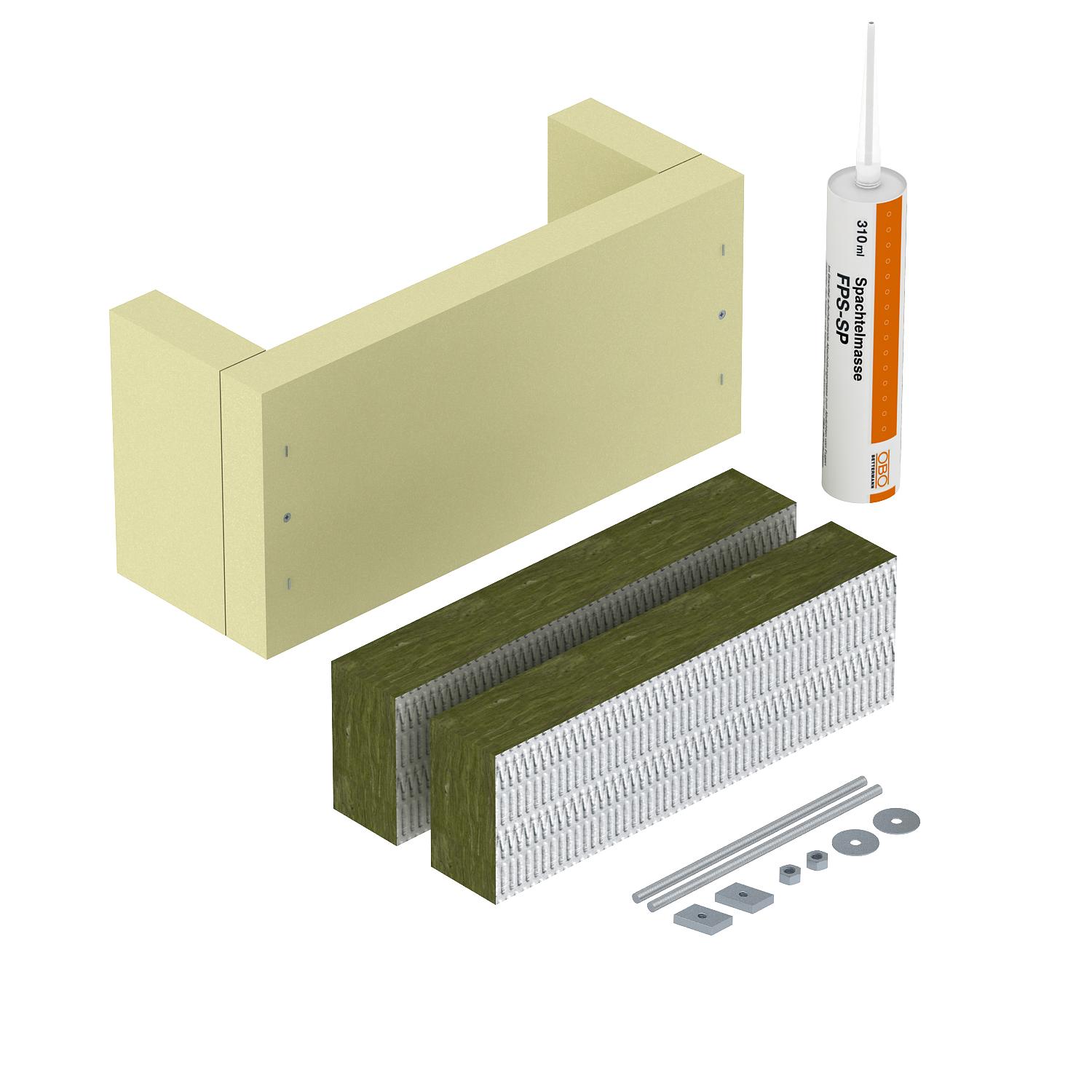 Opis proizvodaSet za vlačno rasterećenje vertikalno položenih kabela sukladno HRN DIN 4102 dio 12, odobreno za sve tipove kabela i sve vrste vertikalnih instalacija. Razredi očuvanja funkcije E30 do E90. Set se sastoji od kućišta s pločama od mineralnih vlakana, pričvrsnog materijala i kartuše s protupožarnim kitom ASX i natpisnom pločicom.