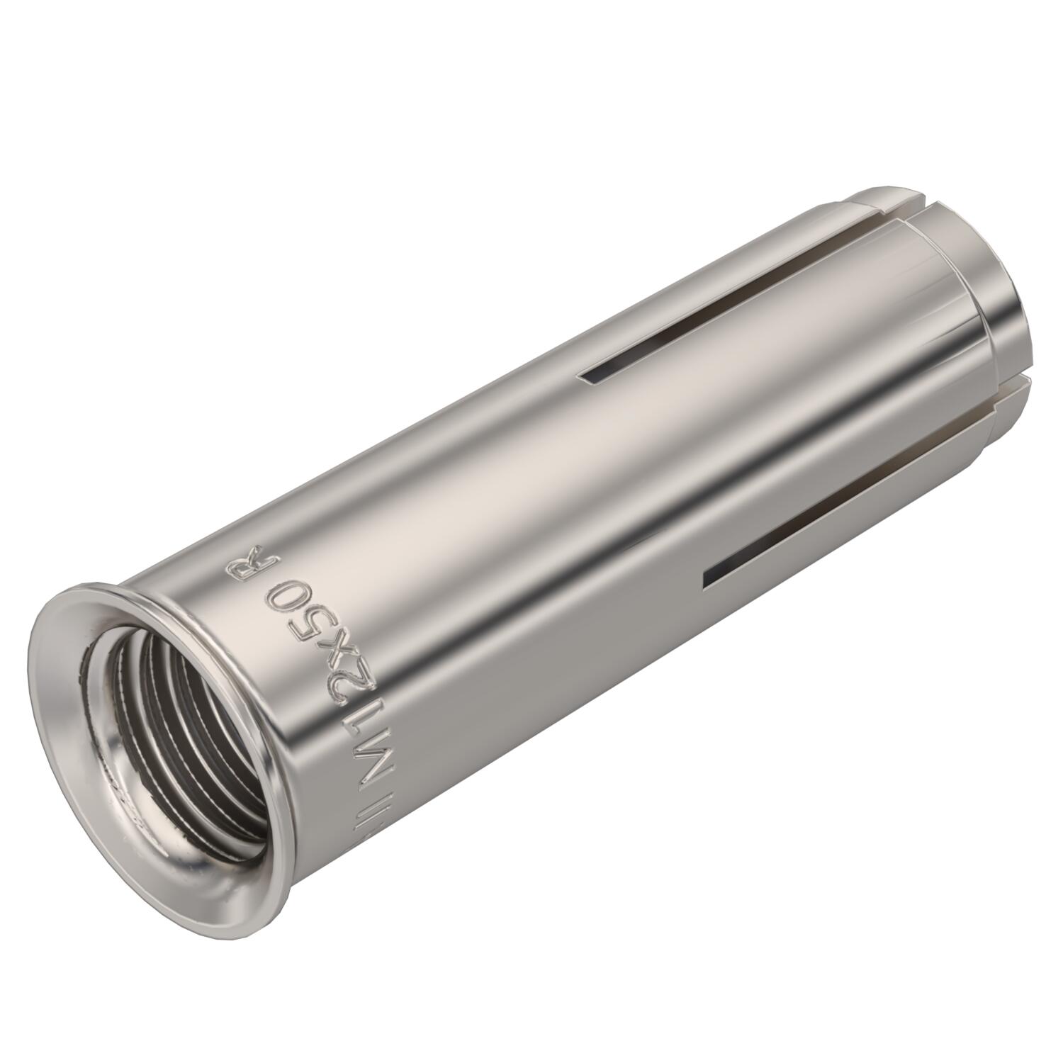 Opis proizvodaUdarno sidro za višestruko pričvršćivanje, s unutarnjim navojem u čeličnoj izvedbi, za sidrenje npr. sustava nosača kabela, konzola, čeličnih konstrukcija itd. u nenapuknutom betonu na zatvorenome i otvorenome. Za zabijanje čekićem. S podignutim rubom kako bi se izbjeglo uvlačenje u bušotinu. Ne hrđa i vrlo je otporno na koroziju. Sidrena čahura zateže se uza izbušeni zid kad utisnete unutarnji zatik, npr. alatom za ručno postavljanje ESH M. Ispitano prema tehnici zaštite od požara, razred otpornosti na požar R 120 prema Europskom tehničkom odobrenju ETA-07/0135 za beton.