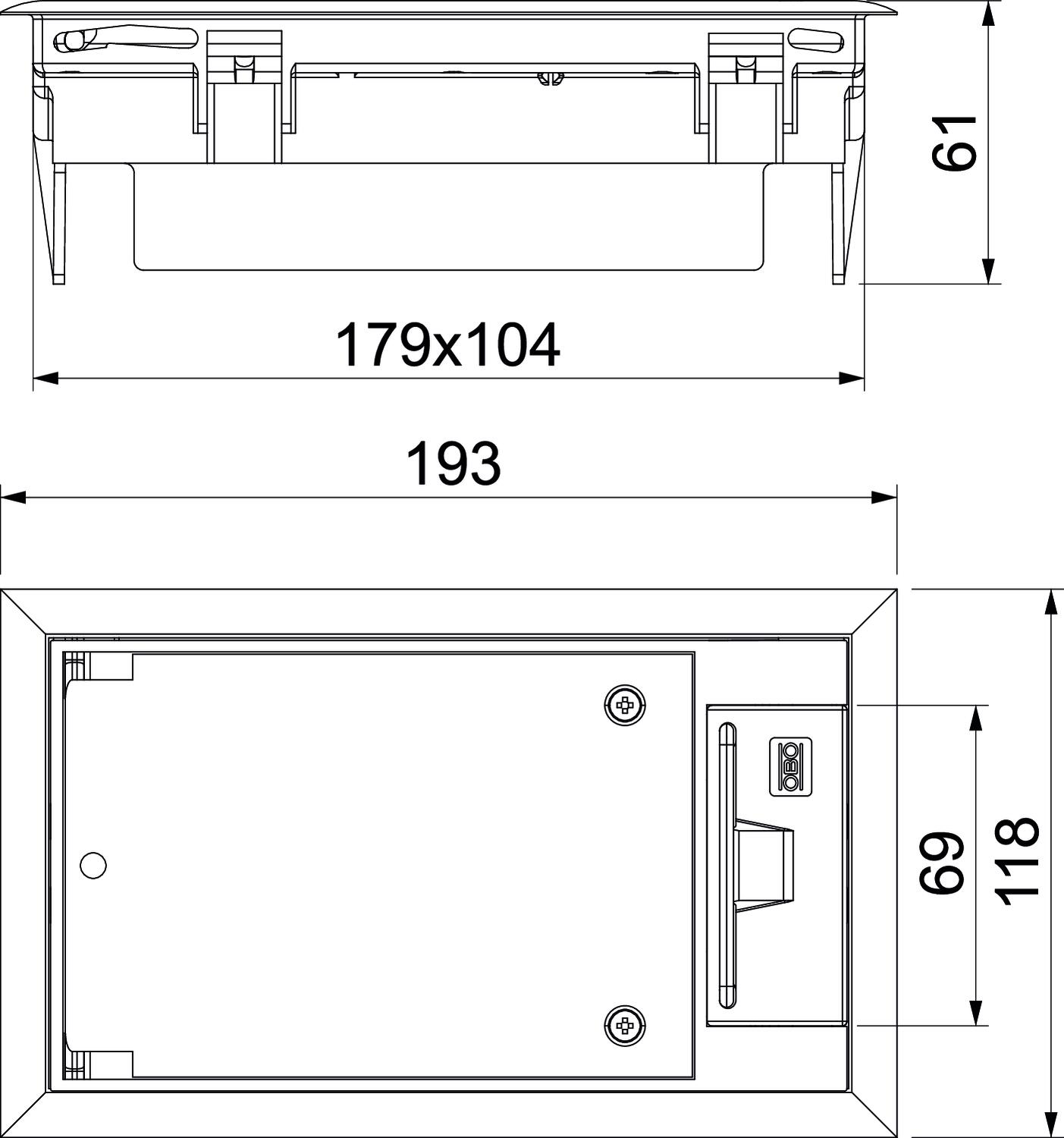 Ugradni okvir s poklopcem i ručicom, jednostruki, za ugradnju nosača MT2.
