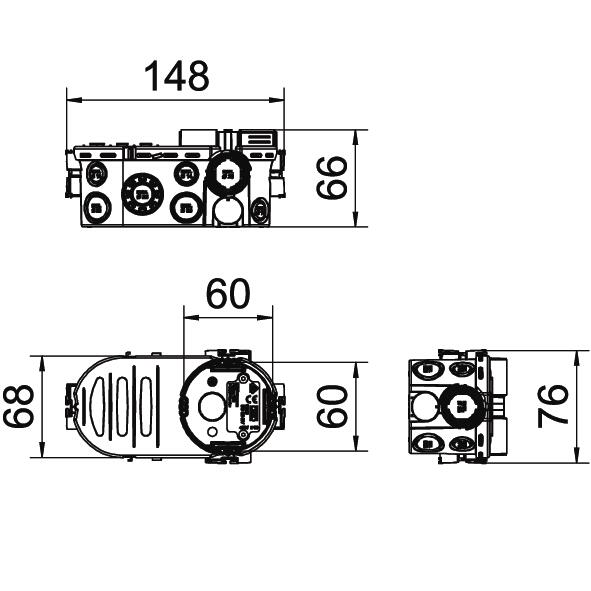 Opis proizvodaPodžbukna kutija za elektroniku s dodatnim instalacijskim bočnim prostorom, za primjenu u ziđu s ugradbenom dubinom od najmanje 66 mm.