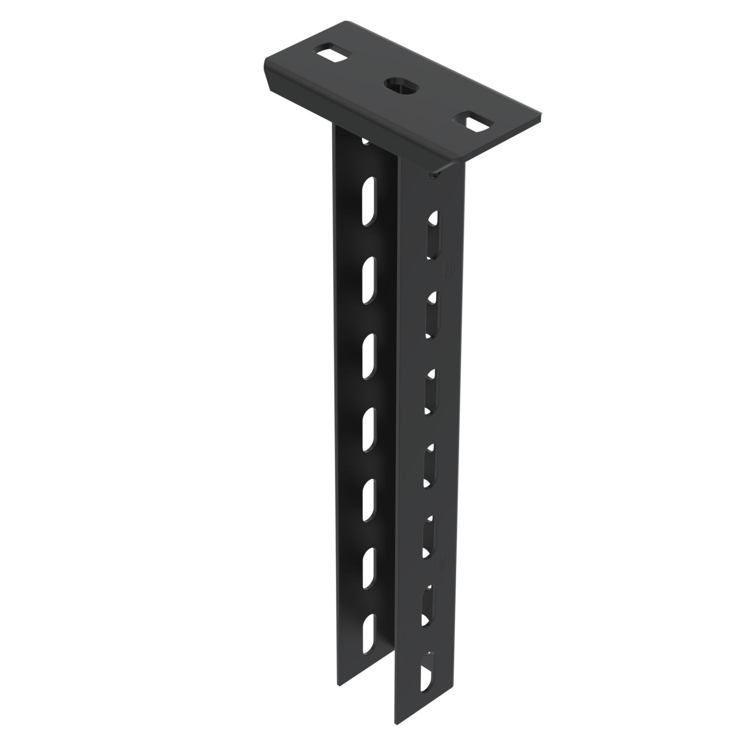 Opis proizvodaSuspended support made from U profile with welded-on head plate, perforated to 3 sides, for the creation of support constructions for cable trays. Suitable for mounting on horizontal concrete ceilings and steel supports. Wall and support bracket can be mounted on both sides of the U suspended support. Spacer DSK to insert, from bracket width 400 mm or when mounting the bracket on the end of the suspended support. With black powder coating.