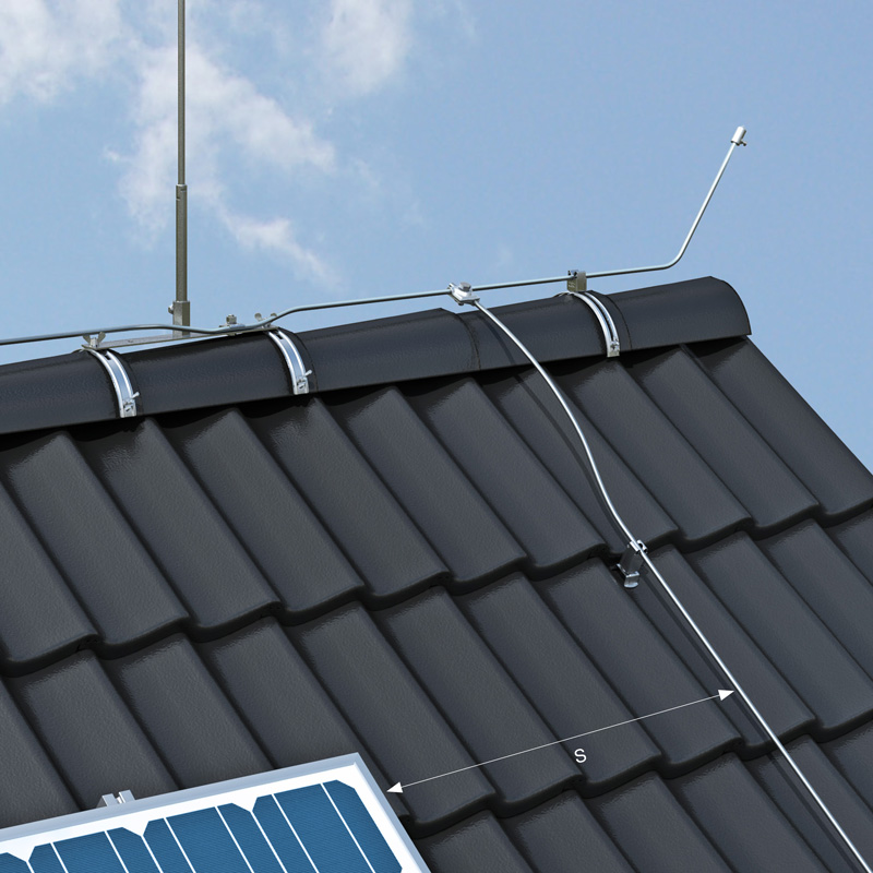OBO asortiman za vanjsku zaštitu od udara munja za PV instalacije uključuje: